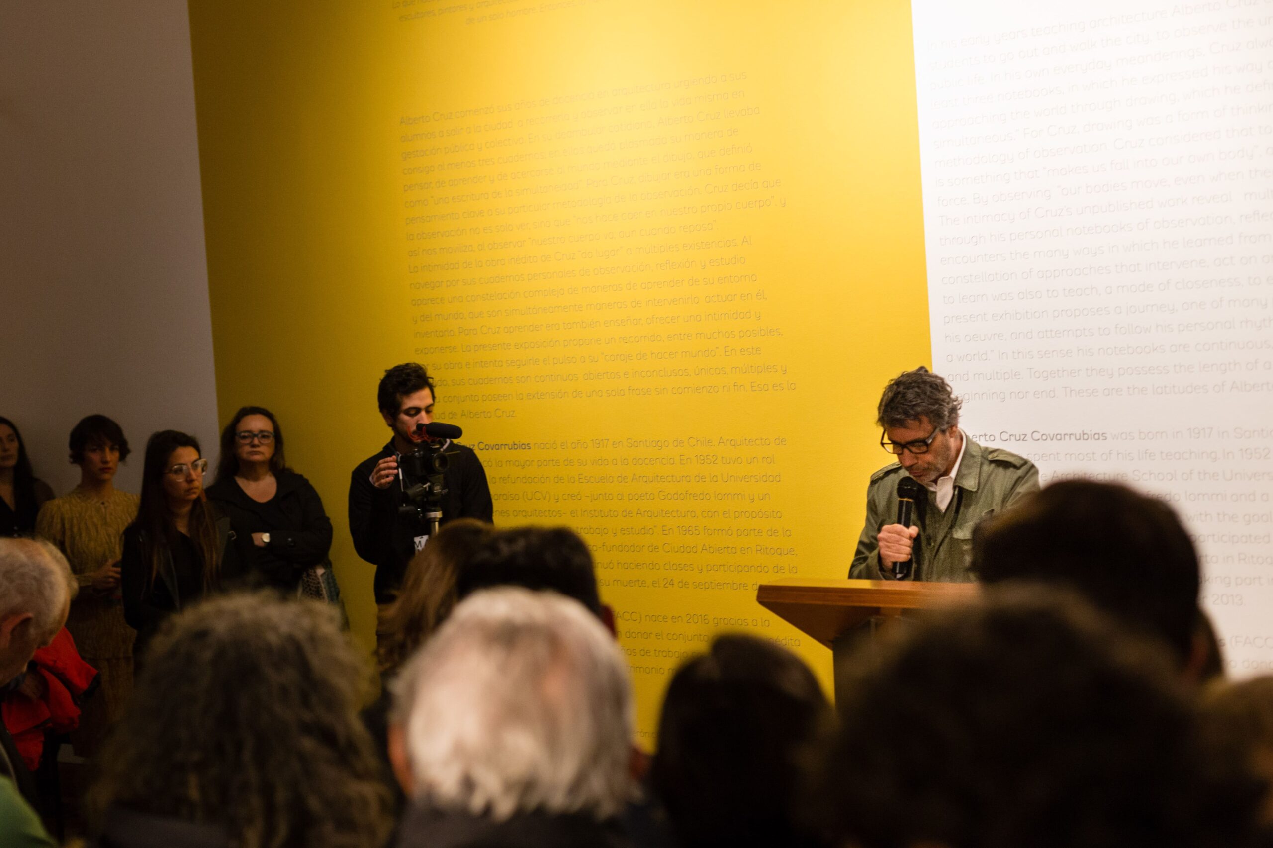 De primera mano -y en primera persona- los cuadernos de Alberto Cruz dan cuenta de su peculiar metodología de observación, una manera de pensar, enseñar, aprender y crear. Un lenguaje que es al mismo tiempo palabra y dibujo. La exposición, a cargo de las curadoras María Berríos y Amalia Cross, presentó por primera vez los cuadernos, hasta entonces, inéditos de Cruz, que durante toda una vida fueron su laboratorio personal de experimentación y desarrollo de esta metodología, un archivo íntimo de su manera de recorrer, investigar y hacer mundo.